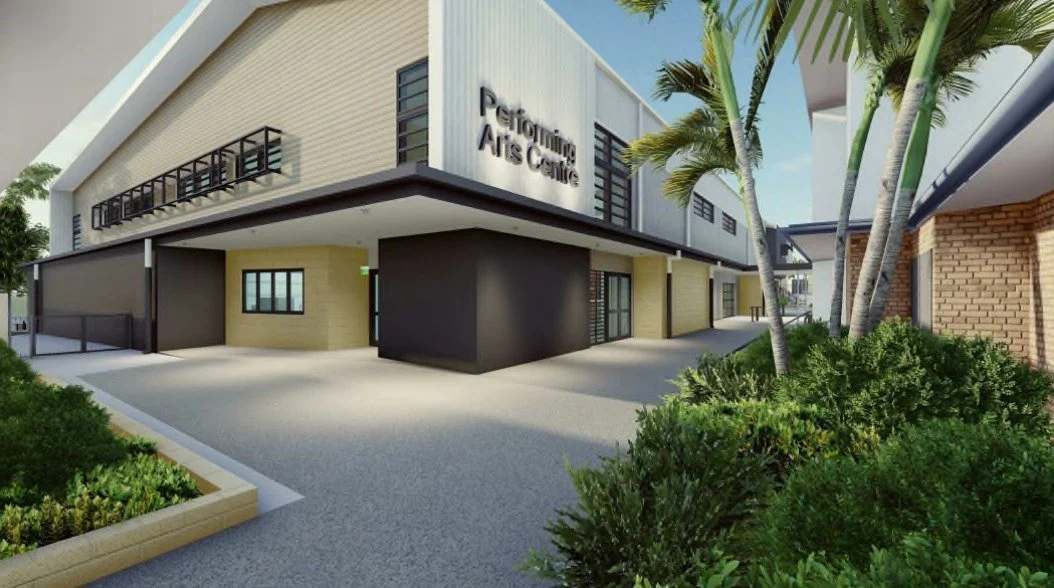 A new two storey building featuring: · A performance stage · Two drama learning areas · Two dance studios · Two music areas · Two multimedia areas · Multiple classrooms · An ensemble studio · A ticket office · A café · A state-of-the-art recording/editing studio · A lighting and sound booth.