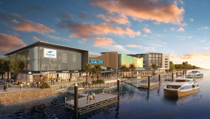 The Townsville Marine Tourism Precinct is an iconic new tourism hub and breakwater terminal designed to create a vibrant and new urban space for a range of world class commercial, residential and retail outlets. The terminal will include new ferry berths, facilities for buses, a commercial precinct and a brand new 90 room hotel.