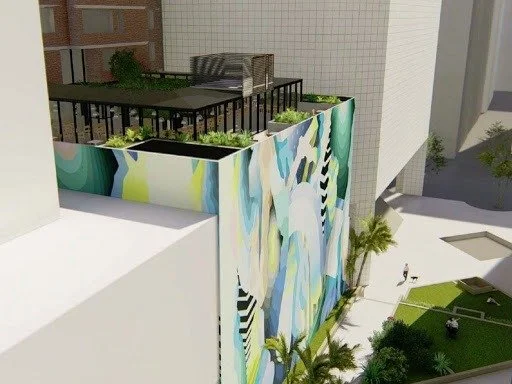 The Great Southern Hotel in Brisbane is currently undergoing a significant refurbishment and extension. The new extension proposed an additional 77 hotel rooms, rooftop restaurant and rooftop solar distributer, new café, along with the five-storey atrium compromising mature plants and green walls. This refurbishment also includes an urban art installation to feature on the rear and side boundary walls.
