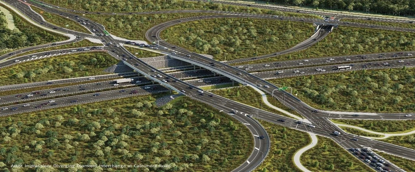 The project includes the provision of new transport infrastructure including main roads, slip roads, pedestrian footpaths and bike lanes, bridges, carparking provisions and pedestrian crossings from the Caloundra Road to Sunshine Coast Motorway.