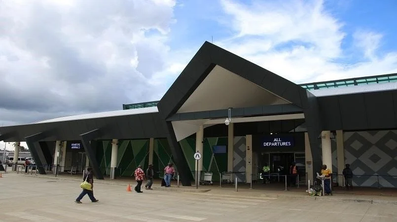 A small airport terminal building, two and a half stories with a floor area of about 2000 sqm at the Provincial Airport of Goroka in the Eastern Highlands of PNG.